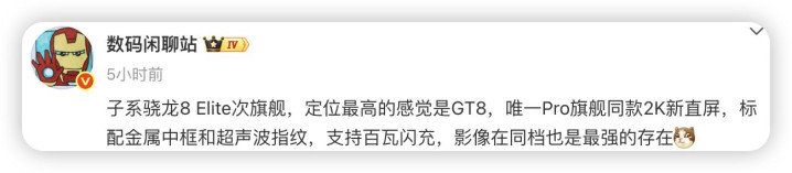 很显然,真我GT8非常值得期待,骁龙8至尊版+独显双芯平台、Pro同款2K直屏、同档最强影像、7800mAh大电池、超声波指纹、IP68&69防尘防水,大R角屏+金属中框+玻璃后盖,这套组合感觉连红米K90这次都扛不住,因此追求更强体验的用户,还是等安心等真我GT8更合适。